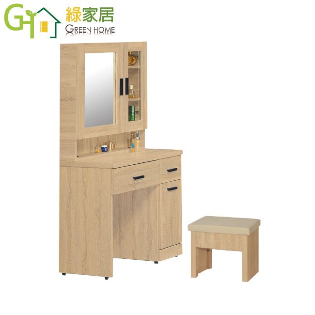 【綠家居】廷布 現代3尺開合式鏡台/化妝台(含化妝椅)