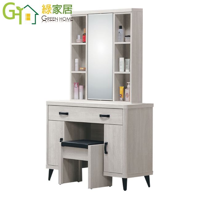 【綠家居】蓋爾達 現代3.2尺旋轉式鏡台/化妝台組合(含化妝椅)