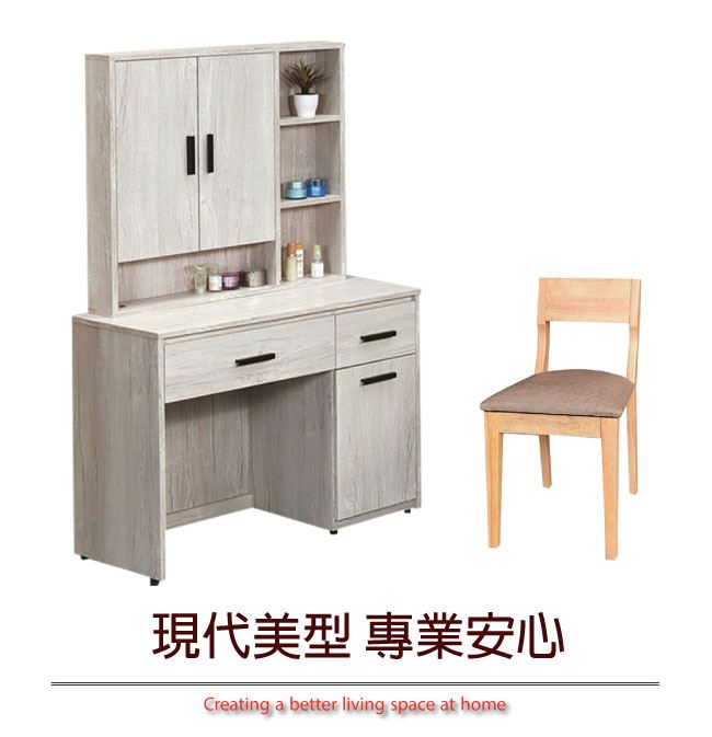 商品介紹 | 【綠家居】卡佐 橡木紋3尺開合式鏡台/化妝台組合(含化妝椅) 橡木紋色系+現代簡約風格+安心材質製造,鏡台整體採用防蛀木心板+五金滑軌結構+強化玻璃鏡面+防潮耐磨腳座等安心材質製造,外層採用優利坦全包式耐磨噴漆處理搭配開合式鏡面櫃+開門櫃+二抽屜+開放&隱藏式收納等收納設計,全由專人配送到家,專業安心服務,替你省下更多時間! 【商品特色】 橡木紋色系+現代簡約風格+安心材質製造,使用放心+搭配居家更便利 鏡台採用防蛀木心板+五金滑軌結構+強化玻璃鏡面+防潮耐磨腳座等安心材質製造 開合式鏡面櫃+開門櫃+二抽屜+開放&隱藏式收納等收納設計 此商品不需要DIY組立,此商品為組立後之成品 品質保證、專業設計、貼心服務 全由專人配送到家,專業安心服務,替您省下更多時間 |