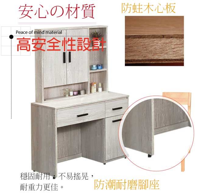 【綠家居】卡佐 橡木紋3尺開合式鏡台/化妝台組合(含化妝椅)