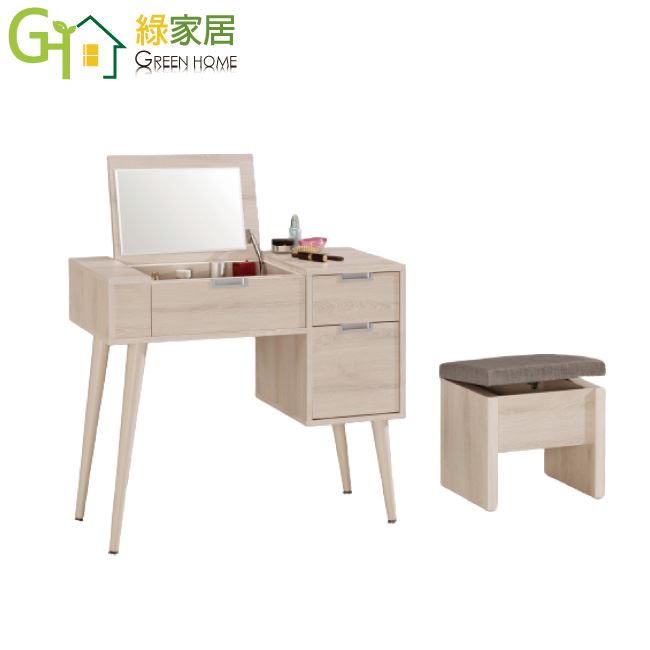 【綠家居】艾嘉柏 上掀式3尺鏡台/化妝台組合(鏡台+化妝椅)