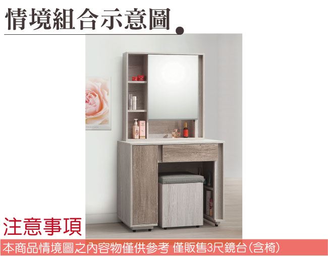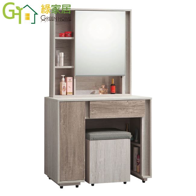 【綠家居】提韋克 時尚3尺開合式鏡台/化妝台組合(含化妝椅)