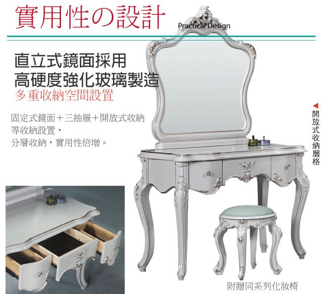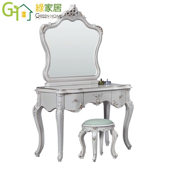 【綠家居】安蒂 法式白3.3尺立鏡式鏡台/化妝台組合(含化妝椅)