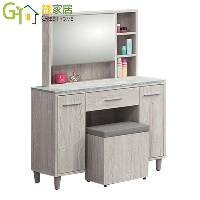 【綠家居】巴菲 淺橡3.3尺開合式鏡台/化妝台組合(含化妝椅)
