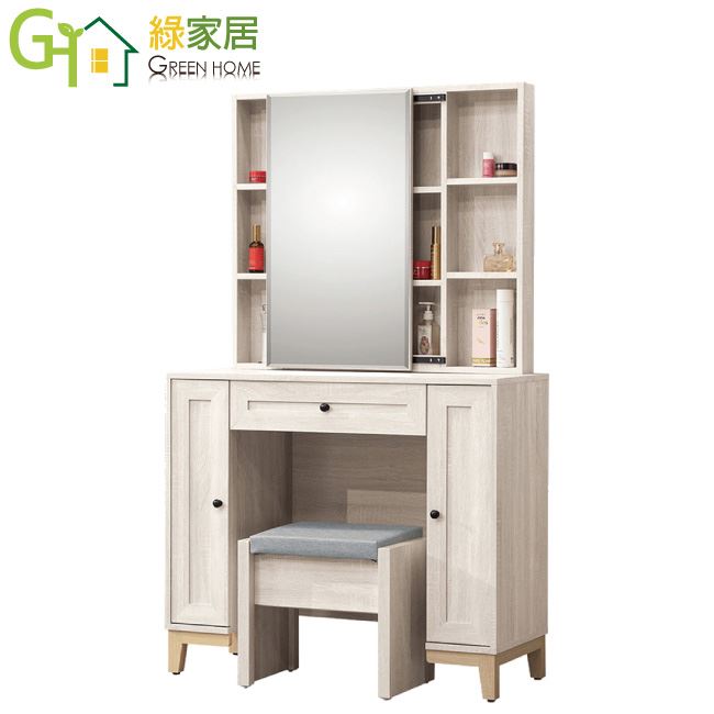 【綠家居】范辛頓 現代3.3尺側推式鏡台/化妝台(含化妝椅)