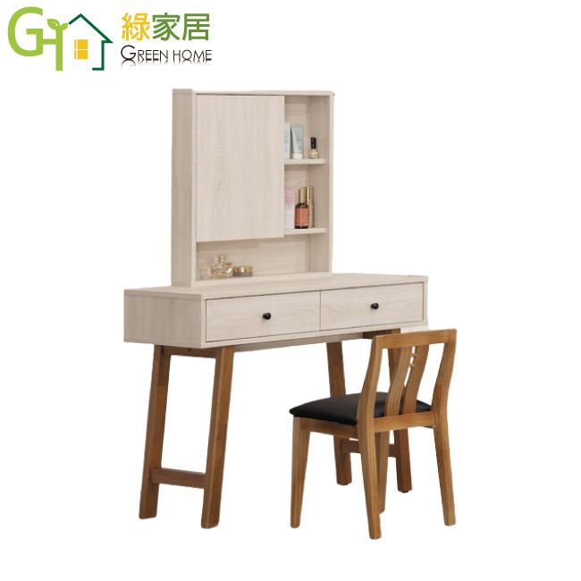 【綠家居】比查特 雙色3.2尺開合式鏡台/化妝台組合(含化妝椅)