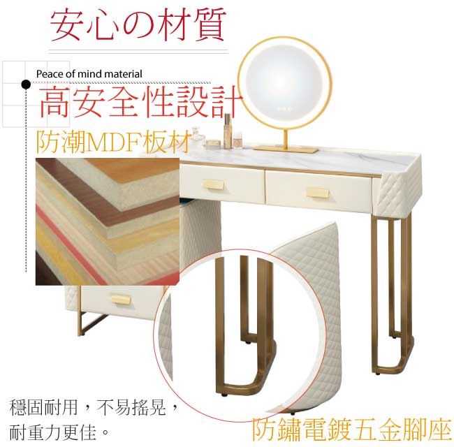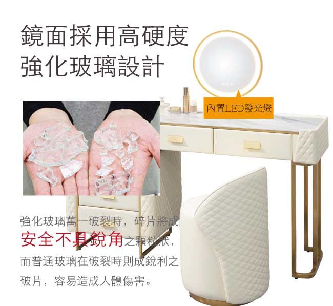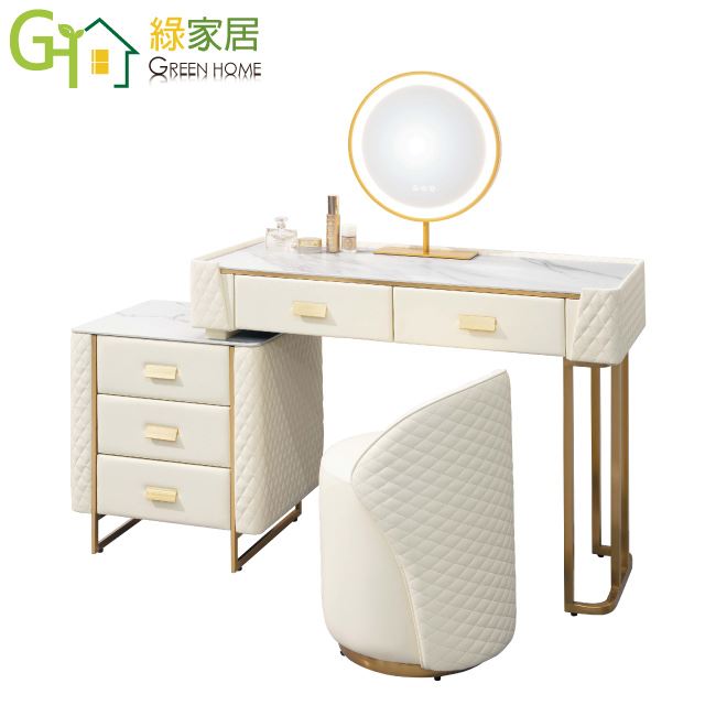 【綠家居】魁北克3.3尺皮革岩板伸縮化妝台/鏡台(含化妝椅)