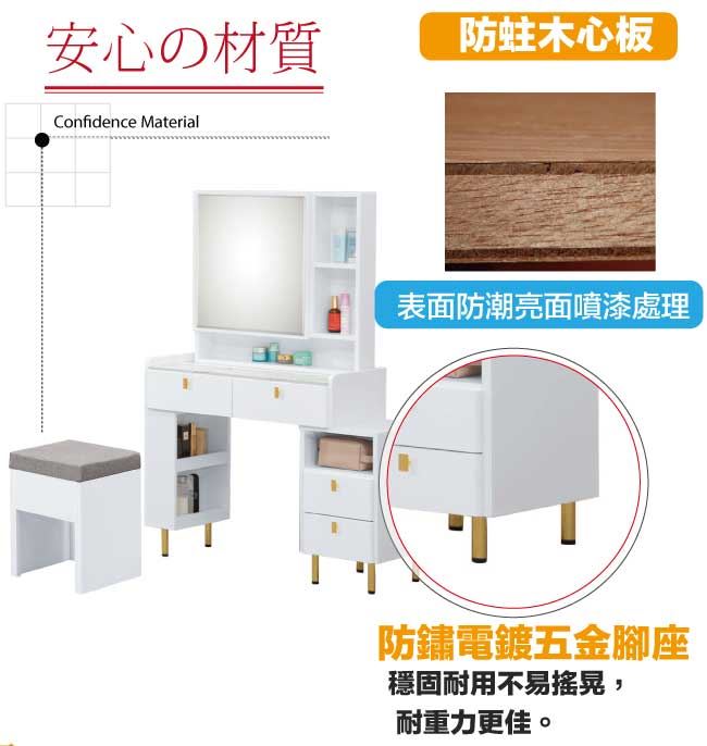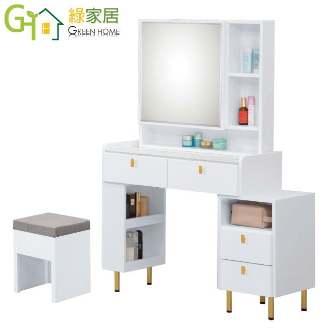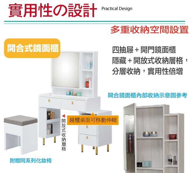 【綠家居】溫荷克輕奢白3.7尺開合鏡面伸縮鏡台/化妝台組合(含化妝椅)