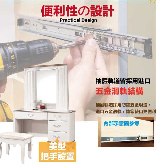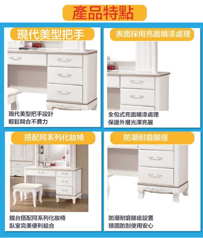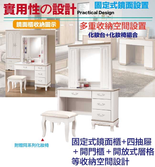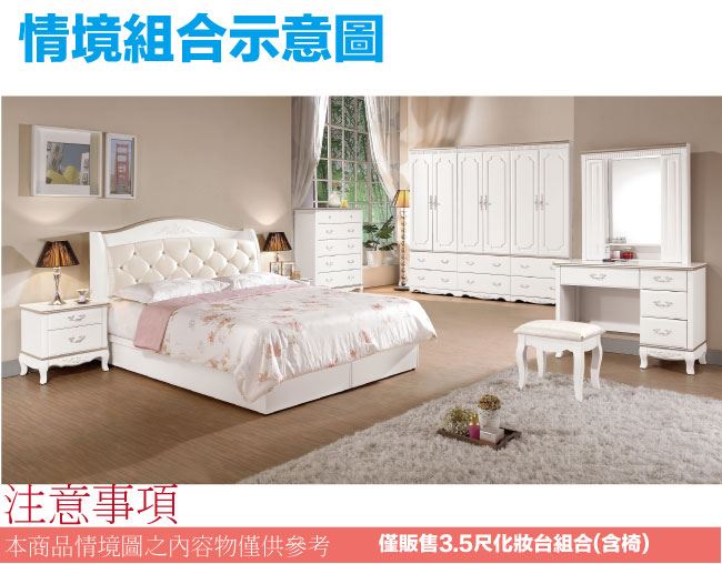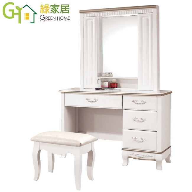 【綠家居】帝伊新古典白3.5尺固定式鏡台/化妝台組合(鏡台+化妝椅)