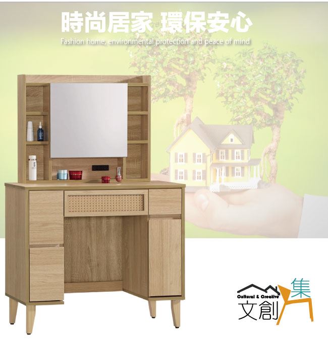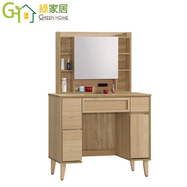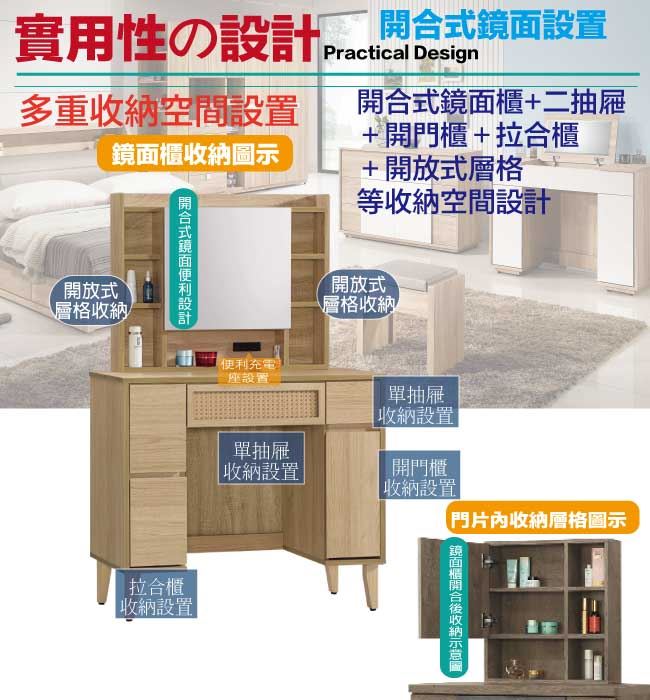 【綠家居】神奈川編織紋3尺開合式鏡面化妝台/鏡台(不含化妝椅)