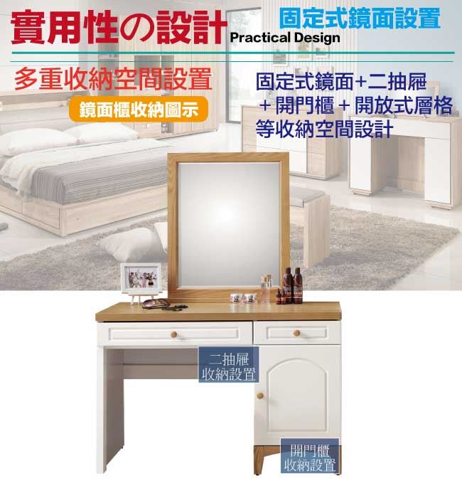 【綠家居】路可雙色3.7尺固定式鏡面化妝台/鏡台(不含化妝椅)