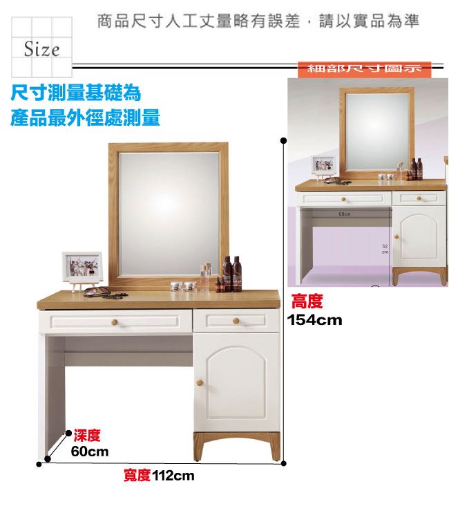 材質 | ◆產品名稱:【綠家居】路可雙色3.7尺固定式鏡面化妝台/鏡台(不含化妝椅) 尺寸:(寬)112x(深)60(高)154/公分 ◆材質: 材質:防蛀木心板+防潮MDF板材+防潮耐磨腳座+五金滑軌結構+強化玻璃鏡面 噴漆:防潮耐磨&亮面噴漆處理