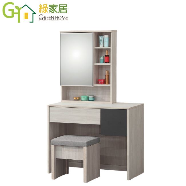 【綠家居】路多雙色3尺開合式鏡面化妝台/鏡台組合(含化妝椅)