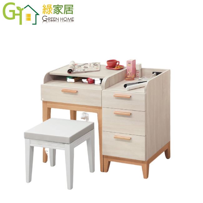 【綠家居】路卡雙色3.3尺上掀式鏡面化妝台/鏡台組合(含化妝椅+桌面附設充電插座)