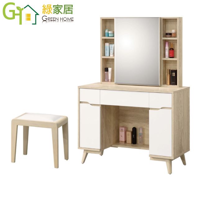 【綠家居】亞果雙色3.3尺側推式鏡面鏡台組合(含化妝椅)