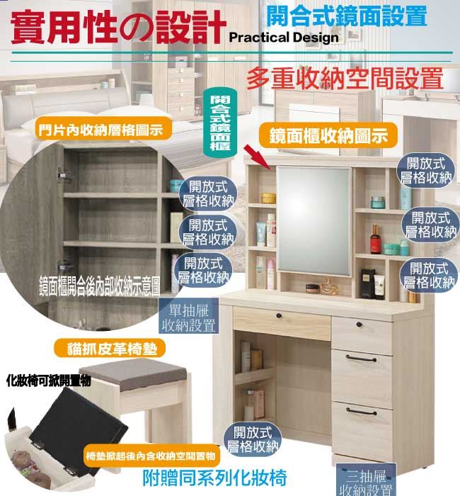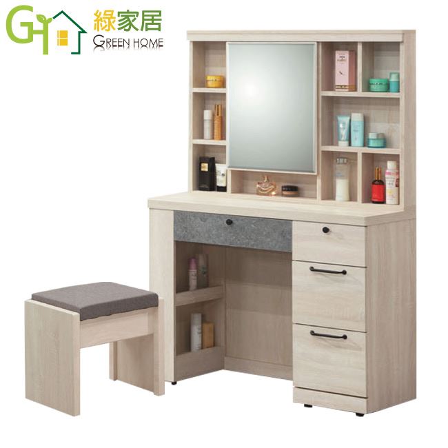 【綠家居】夏亞3.1尺開合式鏡面鏡台組合(二色可選+含化妝椅)