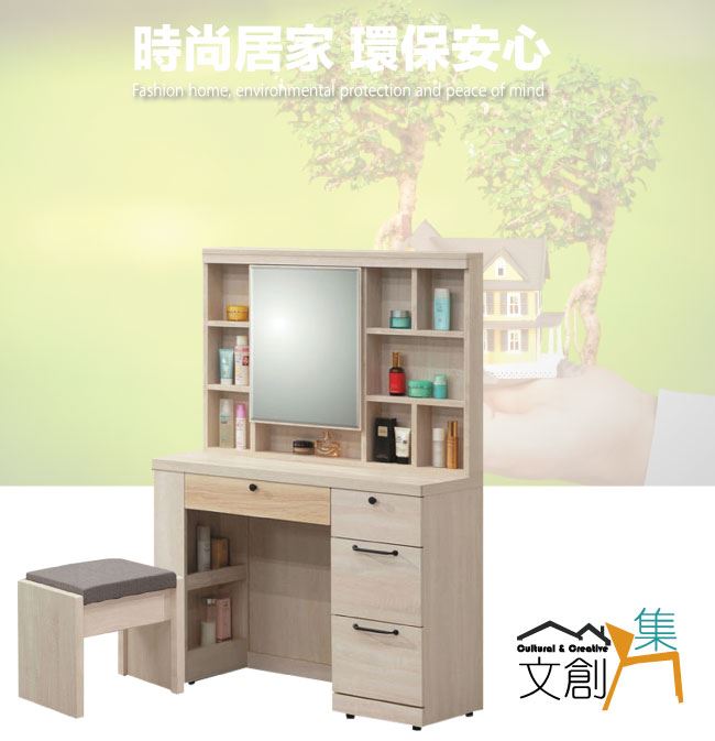 商 品 介 紹 | 【綠家居】夏亞3.1尺開合式鏡面鏡台組合(二色可選+含化妝椅) 二色可選+現代簡約風格+安心材質製造,使用放心+搭配居家更便利,整體採用防蛀木心板+防潮耐磨腳座+五金滑軌結構+強化玻璃鏡面等材質搭配外層採用優莉坦耐磨全包式噴漆處理 ,採用開合式鏡面櫃+四抽屜+開放層格等收納空間設計,全由專人配送到家,專業安心服務,替你省下更多時間! 【商品特色】 二色可選+現代簡約風格+安心材質製造,使用放心+搭配居家更便利 此組鏡台組合含可收納化妝椅搭配,化妝椅座墊可掀起內含收納層格可用來置放私人物品,增加實用機能性 防蛀木心板+防潮耐磨腳座+五金滑軌結構+強化玻璃鏡面等材質 採用開合式鏡面櫃+四抽屜+開放層格等收納空間設計 此商品不需要DIY組立,此商品為組立後之成品 品質保證、專業設計、貼心服務 全由專人配送到家,專業安心服務,替您省下更多時間