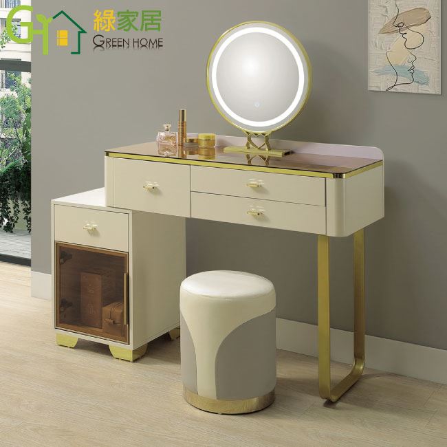 【綠家居】蘭達3.3尺玻璃可伸縮鏡台組合(含化妝椅)