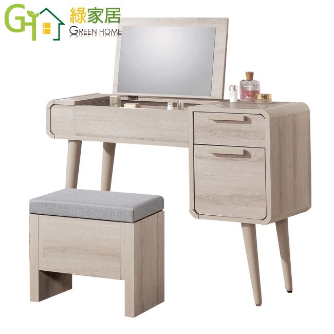 【綠家居】 黛妮斯3尺上掀式鏡面鏡台組合(含化妝椅)