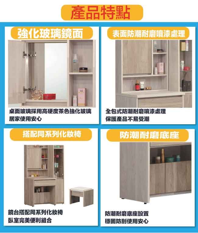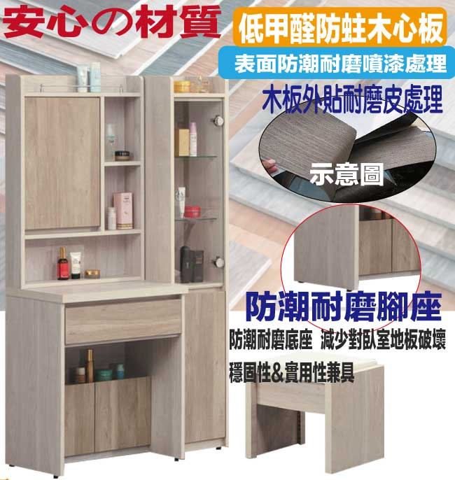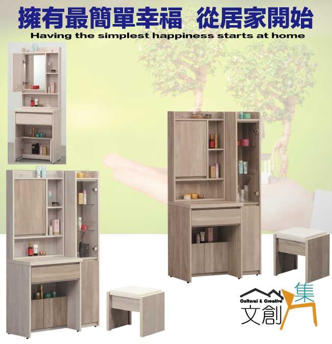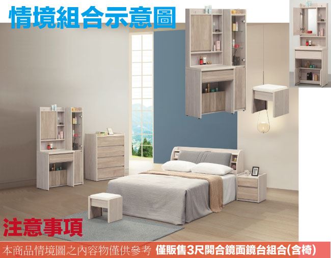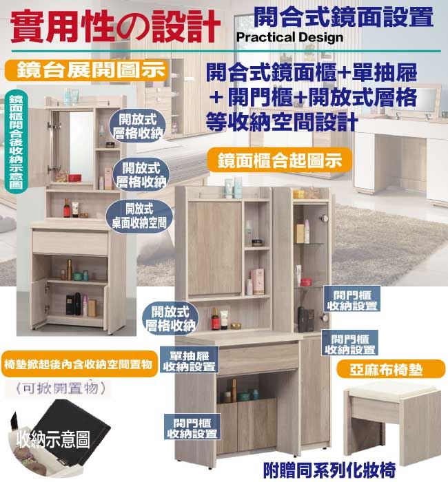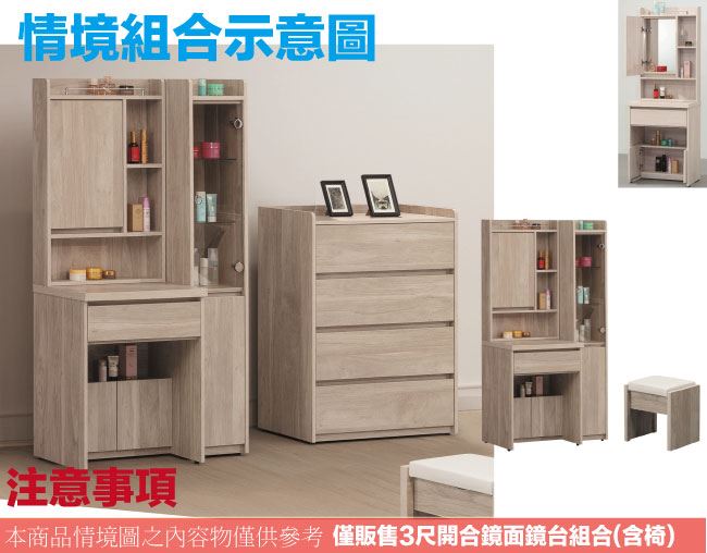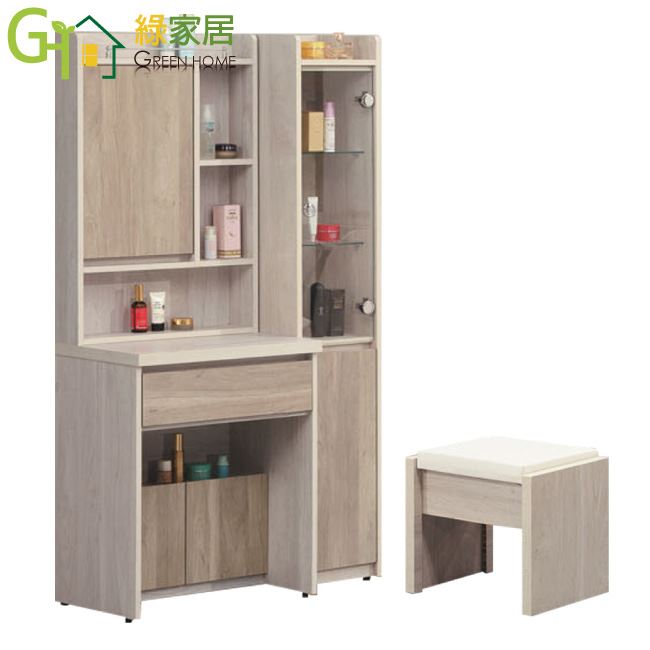 【綠家居】曼特3尺開合式鏡台組合(二色可選+含化妝椅)