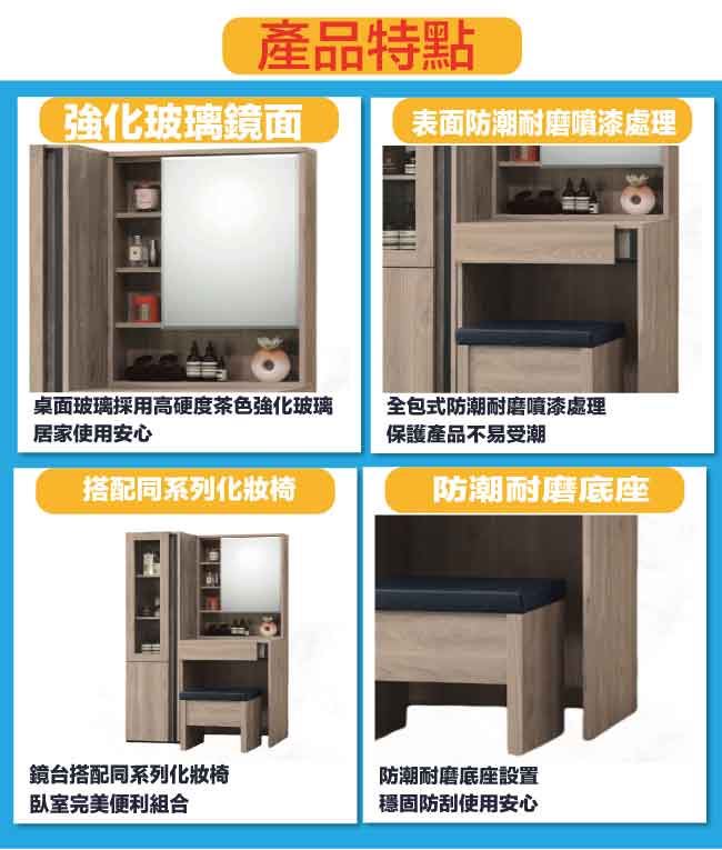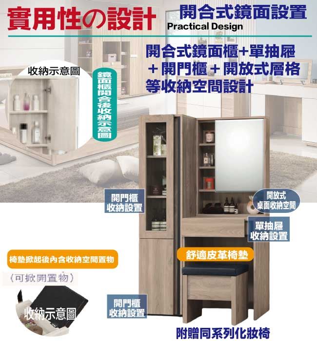 【綠家居】安格3.2尺開合式鏡台組合(含化妝椅)