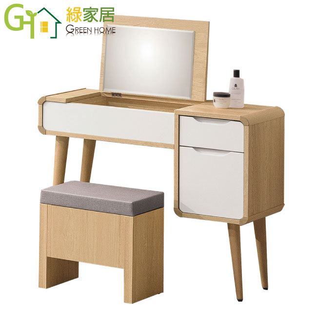 【綠家居】黛斯雙色3尺上掀式鏡面鏡台組合(含化妝椅)