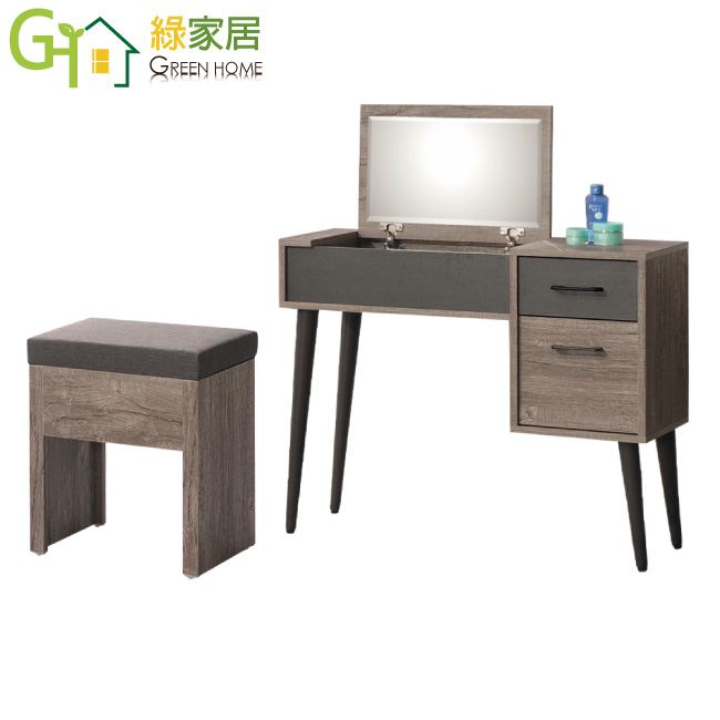 【綠家居】美黛絲雙色3尺上掀式鏡面鏡台組合(含化妝椅)