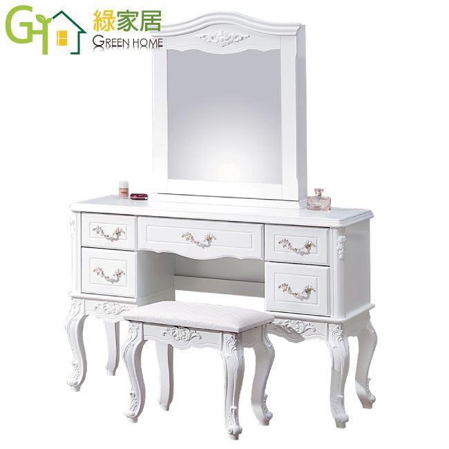 【綠家居】羅法斯優雅白3.5尺側推五抽高腳鏡台組合(含化妝椅)