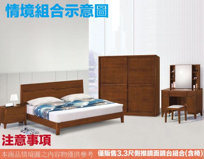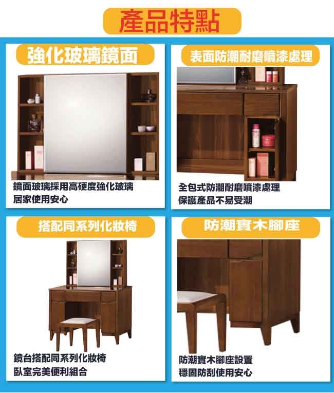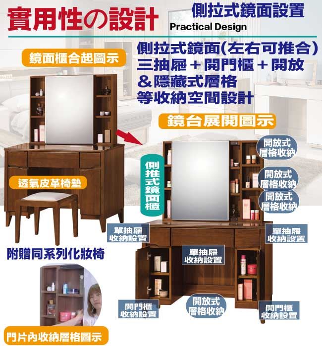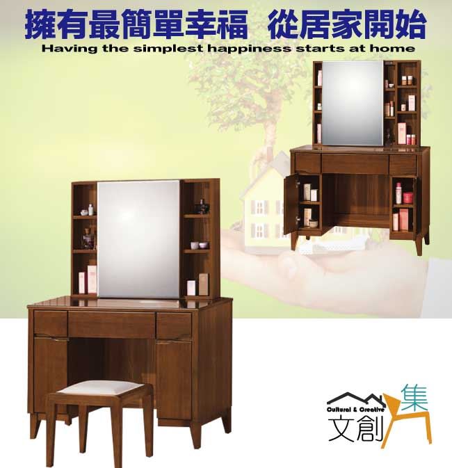 【綠家居】胡立歐實木3.3尺側拉式鏡台組合(含化妝椅)