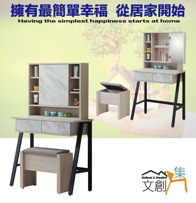 【綠家居】蘿珊雙色2.6尺開合式鏡台組合(含化妝椅)