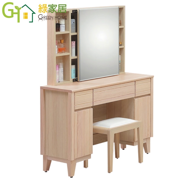 - ◆產品名稱:【綠家居】巴卡3.3尺實木側推鏡面鏡台/化妝台組合(含化妝椅)