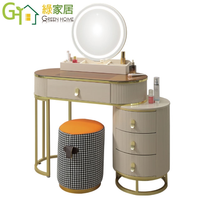【綠家居】卡德恩3尺雙色伸縮觸控鏡面鏡台組合(含化妝椅)