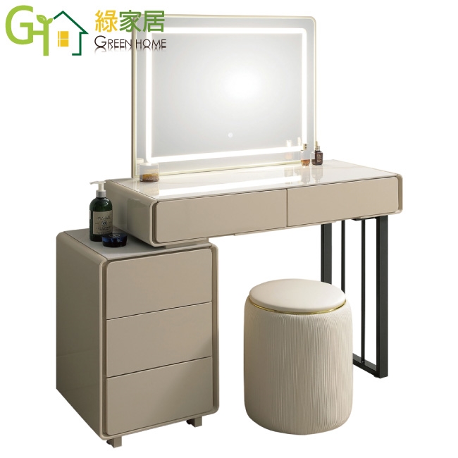 【綠家居】羅德3.3尺岩板伸縮觸控鏡面鏡台組合(含化妝椅)
