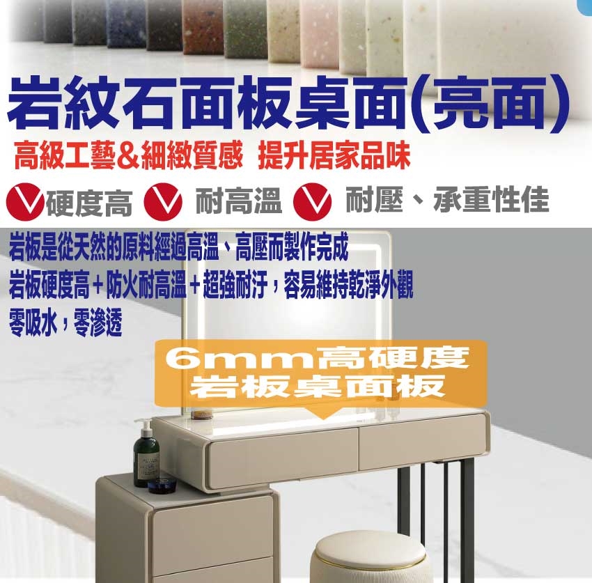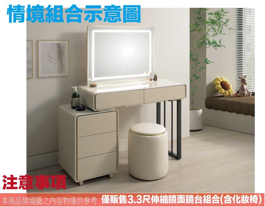 - ◆產品名稱:【綠家居】羅德3.3尺岩板伸縮觸控鏡面鏡台組合(含化妝椅)
