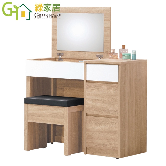 【綠家居】艾米3尺上掀鏡面鏡台/化妝台組合(含化妝椅)