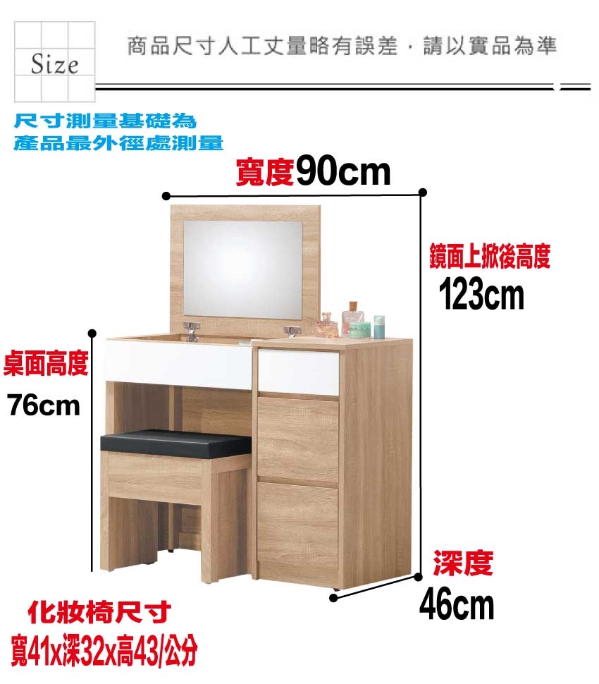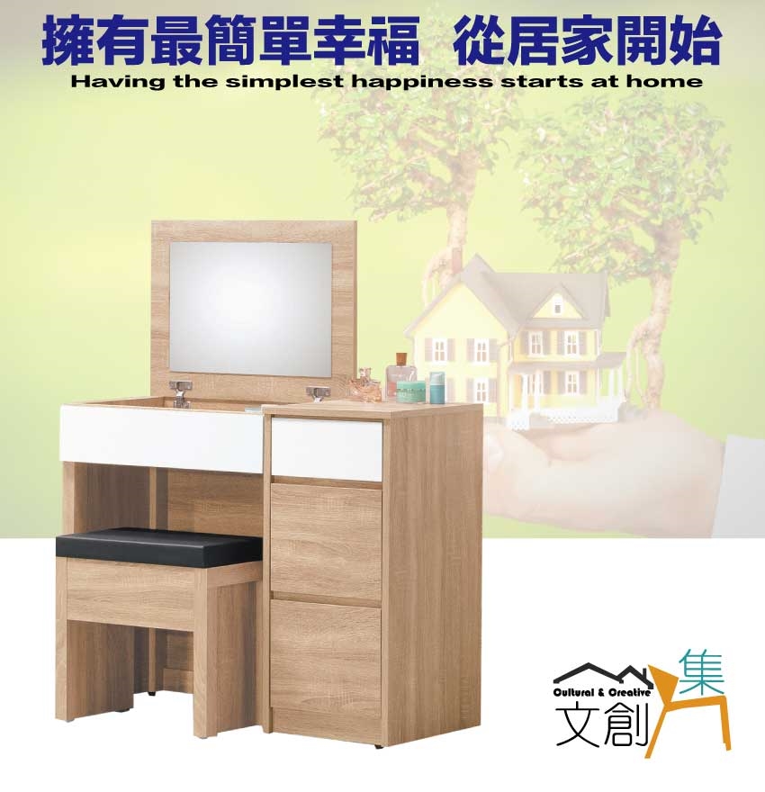 ★偏遠地區需額外加收運費,下標請先問與答詢問★ ★下訂前注意 由於商品流動較快,下訂前請先詢問是否有貨在下訂喔~★ 【綠家居】艾米3尺上掀鏡面鏡台/化妝台組合(含化妝椅) 木紋雙色系+安心材質製造,使用放心+搭配居家更便利,採用防蛀木心板+五金滑軌結構+強化玻璃鏡面+防潮耐磨底座等安心材質製造 ,外層採用防潮耐磨噴漆處理搭配採用上掀鏡面櫃+三抽屜+內&外開放層格等收納空間設計,全由專人配送到家,專業安心服務,替你省下更多時間!