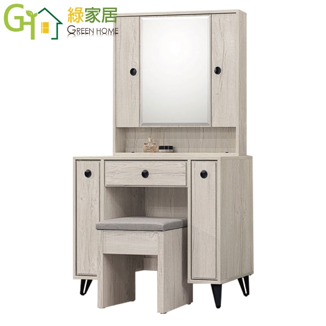 【綠家居】摩帝3尺開合式鏡面鏡台組合(含可收納化妝椅)