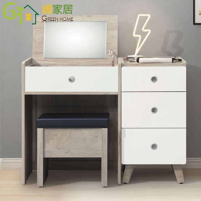 【綠家居】克順雙色3.3尺上掀式鏡台/化妝台組合(含化妝椅)