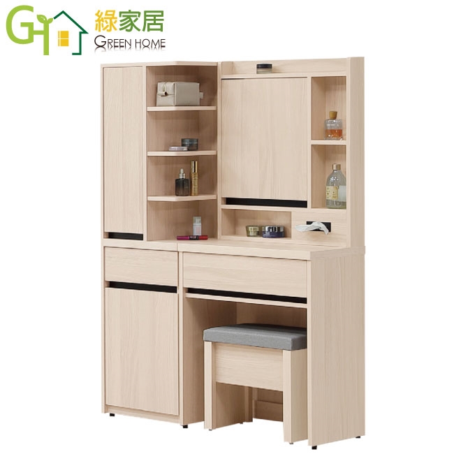 【綠家居】愛可3.3尺開合鏡面鏡台/化妝台組合(側邊櫃+鏡台+含可收納化妝椅)