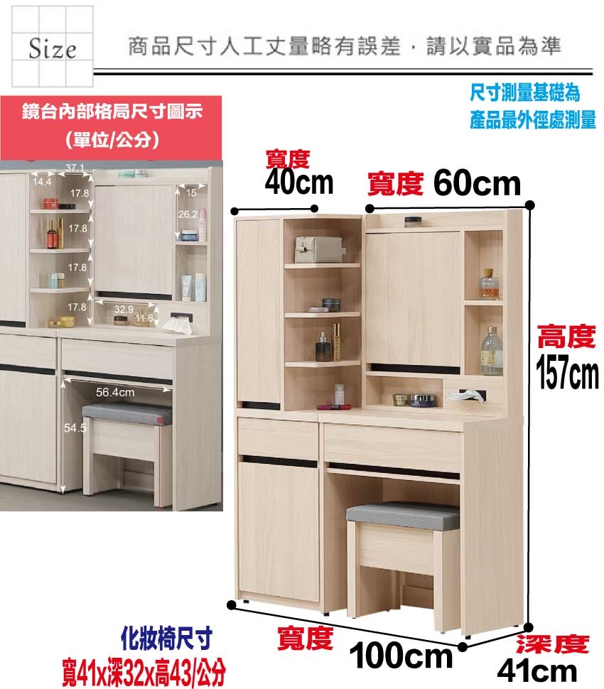 - 尺寸:(寬)100x(深)41x(高)157/公分