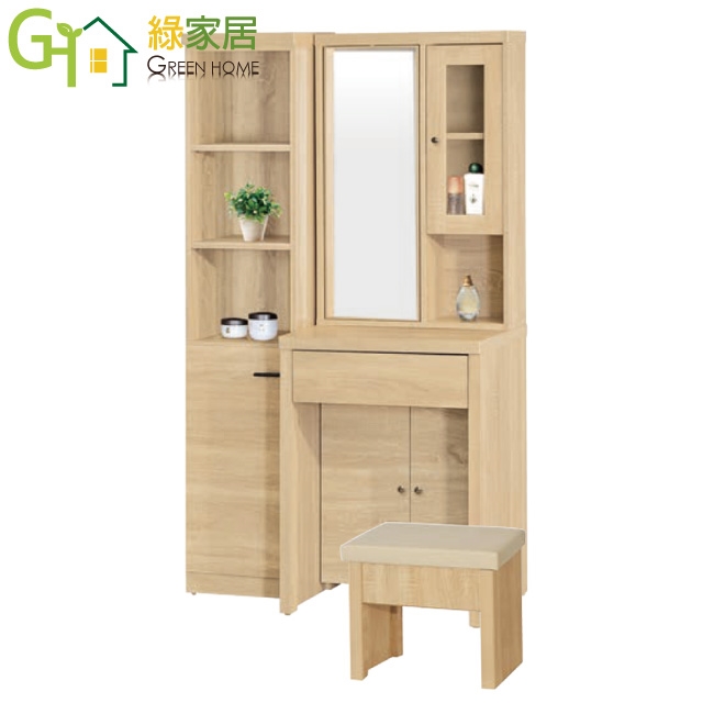 ★偏遠地區需額外加收運費,下標請先問與答詢問★ ★下訂前注意 由於商品流動較快,下訂前請先詢問是否有貨在下訂喔~★ 【綠家居】米倫3.2尺旋轉鏡面鏡台組合(含化妝椅) 原橡木紋色系+安心材質製造,使用放心+搭配居家更便利,採用防蛀木心板+防潮耐磨底座+強化玻璃鏡面等安心材質製造 ,外層採用防潮耐磨噴漆處理搭配採用旋轉鏡面櫃+開門櫃+單抽屜+內&外開放層格等收納空間設計,全由專人配送到家,專業安心服務,替你省下更多時間!