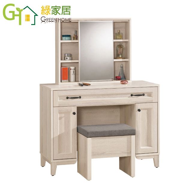 【綠家居】迪亞 時尚3.4尺側推式鏡面化妝台/鏡台(含化妝椅)
