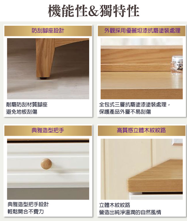 防蛀木心板+防潮MDF板材+高硬度強化玻璃+鋼珠滑軌結構等材質,耐用防潮又不容易變形