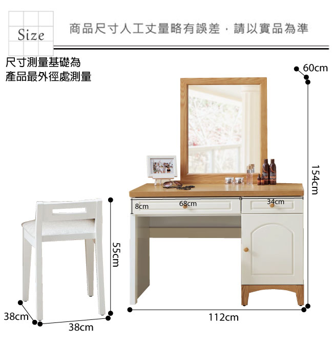 化妝椅:(寬)38 x(深)38 x(高)55 /公分