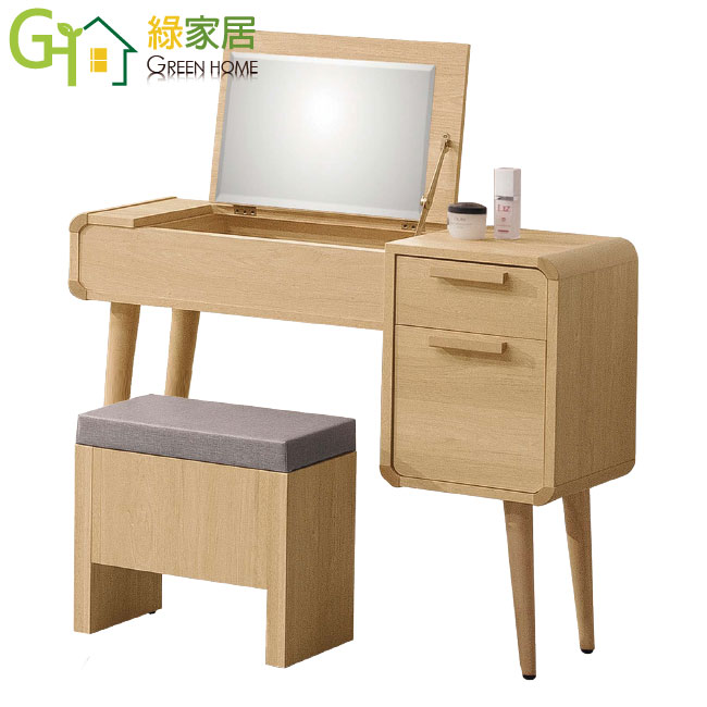 【綠家居】奧皮斯 現代3尺掀鏡式鏡台/化妝台組合(含化妝椅)