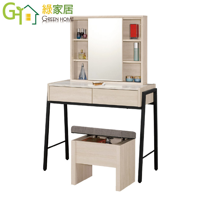 【綠家居】菲莉 現代3尺開門鏡台/化妝台組合(含化妝椅)