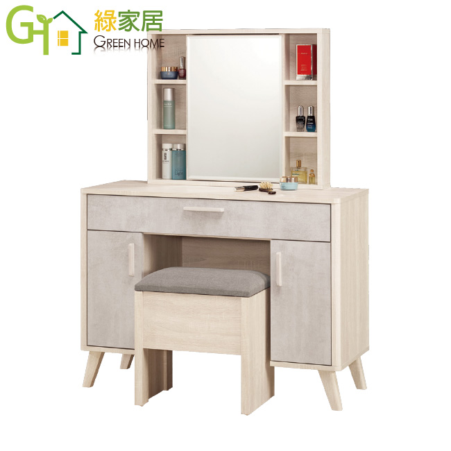 【綠家居】杜蜜拉 現代3.3尺開門鏡台/化妝台組合(含化妝椅)