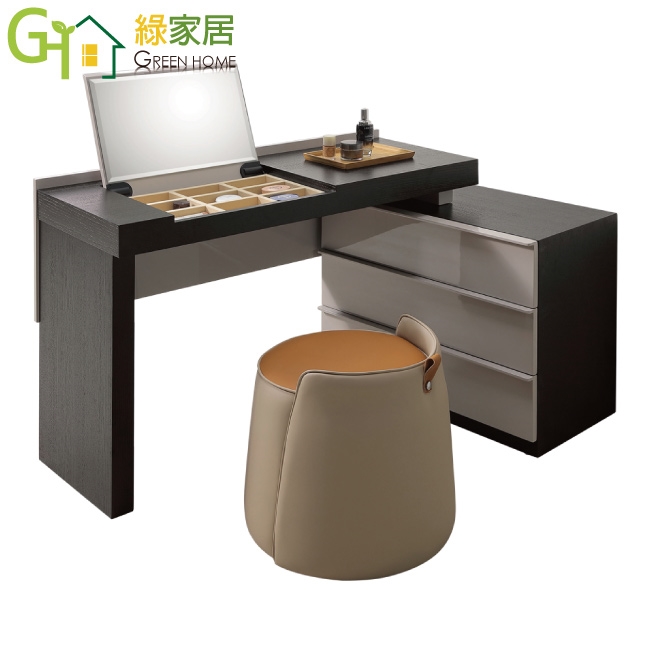 【綠家居】墨古4尺雙色伸縮上掀鏡面鏡台組合(含化妝椅)