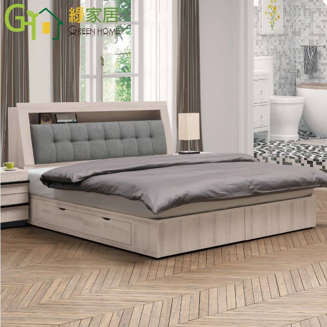 【綠家居】艾咪 時尚5尺亞麻布雙人四抽床台組合(床頭箱+四抽床底+不含床墊)