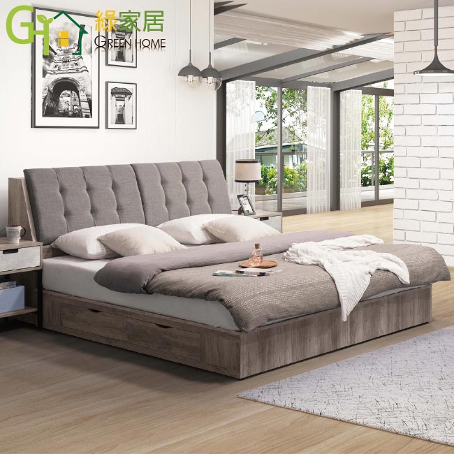 【綠家居】克倫 現代5尺亞麻布雙人二抽床台組合(床頭箱+二抽床底+不含床墊)